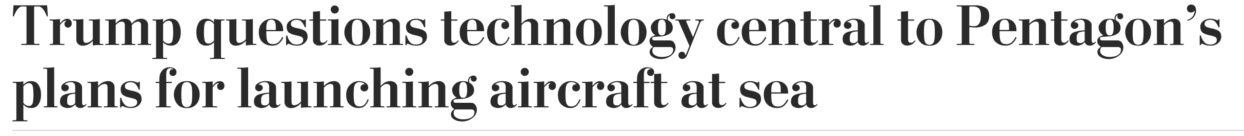 The way Donald is going about this is typical of his assaholic bull in a china shop approach to things, and major defence procurement decisions aren’t undone as easily as he imagines, but dammit, the dummy is right! The old steam catapult design works just fine! It was risk-taking bordering on malpractice to install a replacement technology in a multi-kabillion dollar national asset before anybody could prove it actually worked!