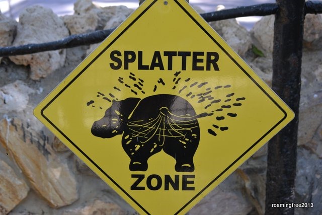 I knew you wouldn’t believe me, so I attached video evidence, as well as a very charming mini-documentary which is also about other aspects of hippo life, and well worth a look. It’s the one at the bottom. As to the other videos, I take no responsibility for whatever becomes of your emotional equilibrium and future peace of mind, should you choose to view them. That’s on you. Just make no mistake: once seen, it cannot be unseen. This bell doesn’t un-ring. Indeed, I now post a cautionary sign, photographed for real at a zoo, that supplies a warning you might do well to heed: