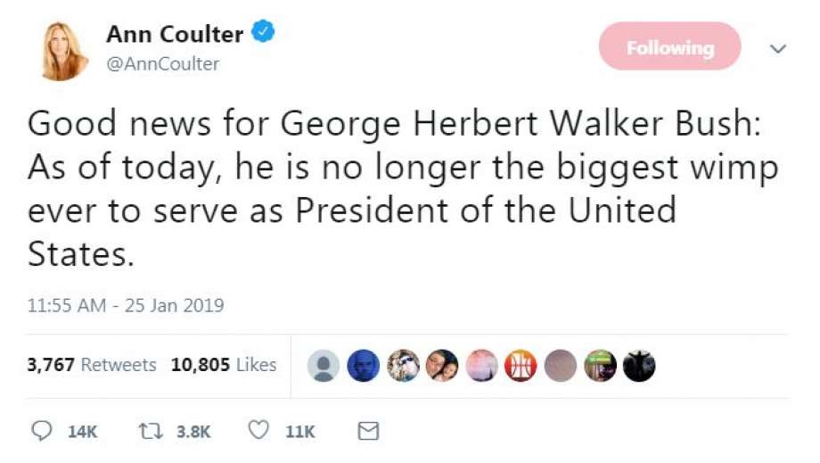 Ha! Suck it, Coulter. Five weeks into the pointless fray, and Trump caves, the shutdown ends, albeit temporarily, and it winds up exactly where it was 35 days ago, with a clean continuing resolution providing interim funding, and not a dime for Donald’s lousy wall. Net result: Jack/Shit. It’s nice to see Donald lose, but Jesus, what a brainless waste of time; what a gratuitous infliction of misery. Now, with nothing changed, three more weeks of furious negotiation can begin, culminating either in a deal, or, supposedly, another shutdown.