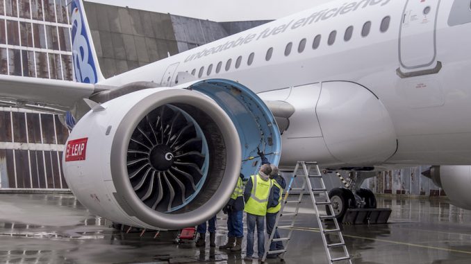 LEAP engines are quite large – bigger than anything mounted before on a 737. This image of an Airbus 321 mounting the new powerplants gives some illustration: