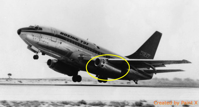 Modifications have of course been made at regular intervals, but over the decades, the changes to the original have been quite incremental. The object of the exercise is to transport as many large primates as possible over the greatest possible distance, while using the least amount of fuel, and thus the modifications to any civil airliner are apt to be tweaks to the length of the fuselage (more primates!), modification to certain aspects of the aerodynamics of the wings (better lift and airflow characteristics) or a change-out of the engines (better fuel consumption). You might well respond that changes to wings, fuselage and engines are, actually, changes to everything that matters, but the point is that these are generally not revolutionary alterations, when looked at in isolation. At a casual glance, most of the differences that result wouldn’t jump out for most people. For example, the original 737 engines and their cowlings looked like this: