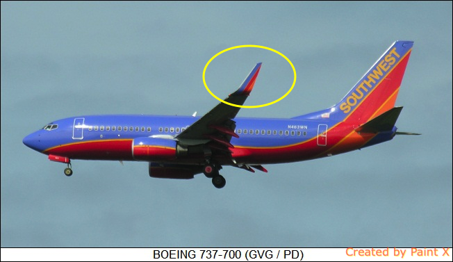 Nothing very radical, at first glance (though those engines are starting to look a little big for their mounts, aren’t they?). Aerodynamically, before the MAX series, the most visually prominent changes have been to the wingtips, which began to sport “winglets”, vertical surfaces designed to corral the messy flow of air around the tips, known as “vortices”, and convert them from something that causes drag into energized flows of air that produce lift: