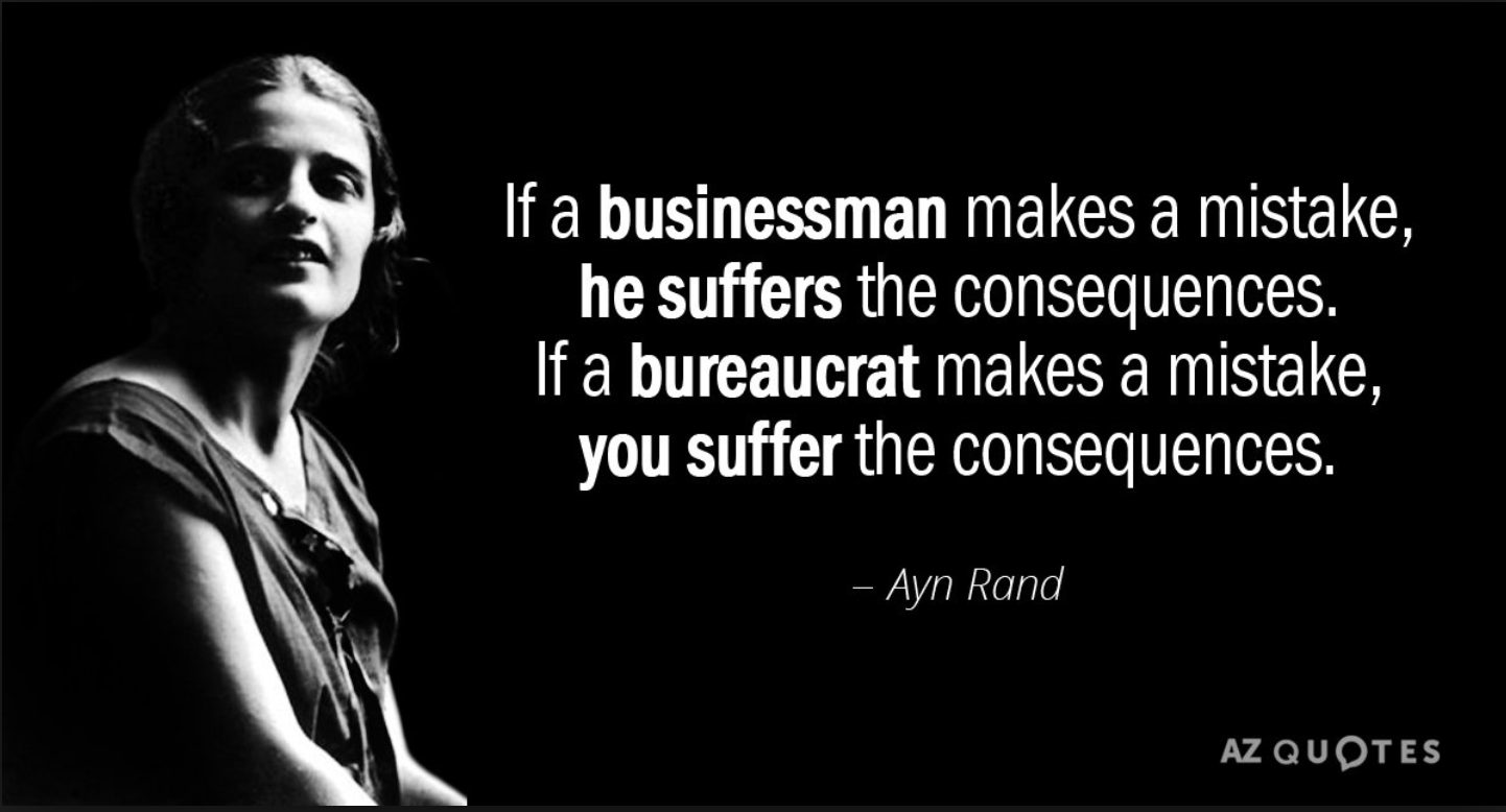 Without Ayn Rand, Margaret Thatcher never says “There is no such thing as society”. Without the twin literary thought-pathogens The Fountainhead and Atlas Shrugged, Ronald Reagan never flogs his famous laugh line that “the nine most frightening words ever said are ‘I’m from the government, and I’m here to help'”. Her malign influence lies behind every aspect of the multiple neo-conservative tsunamis that washed over Western capitalist society over the past 40 years.