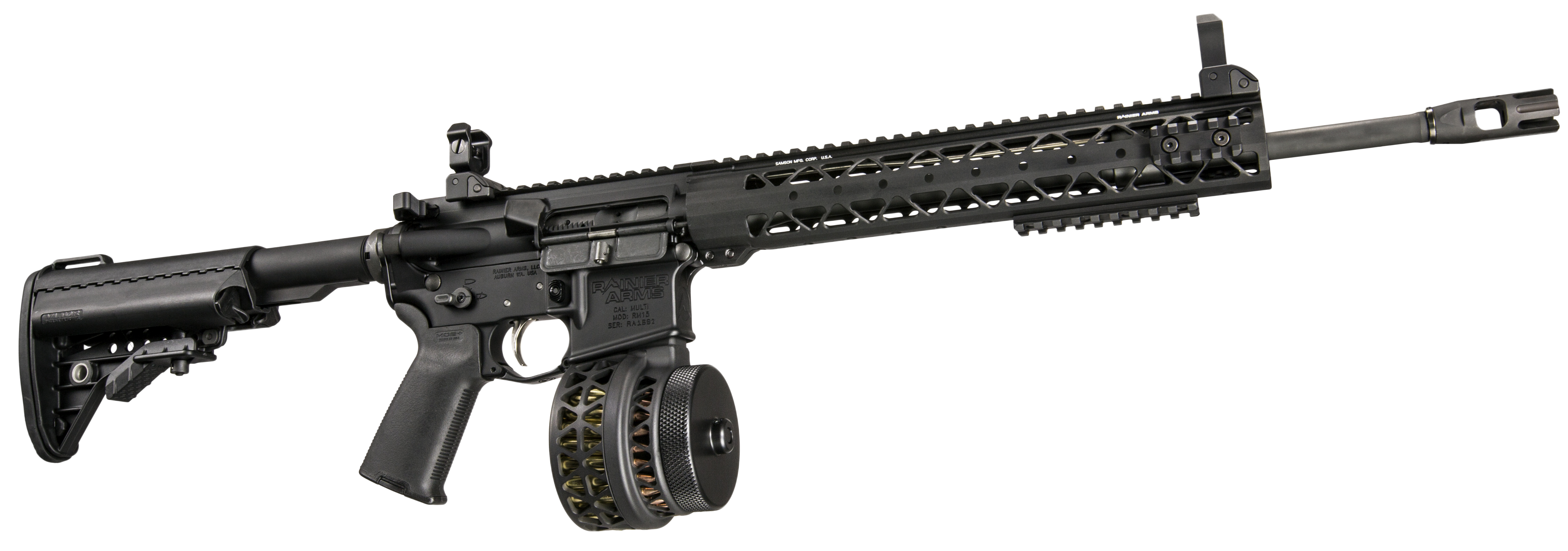 Behold the fruits of our genius. Pictured above is an AR-15 derivative with a 50 round drum magazine. The shooter in Dayton was using something quite like it, but with an even bigger, double-drum model that held 100 rounds. 100 rounds.