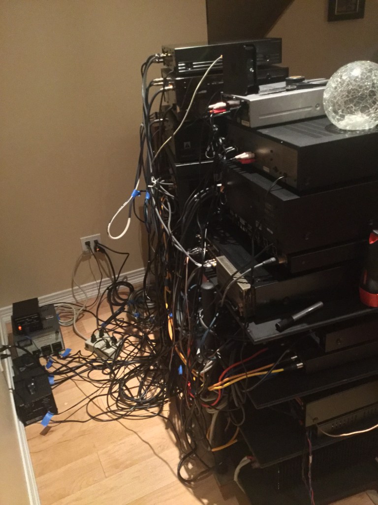Yes, I admit it. I’m a crazed, old school audiophile/stereophile, with a passion for bulky, hugely expensive equipment that the modern millennial has no use for, and doesn’t even know exists. I’m the last of a dying breed. I’m a frigging stegosaurus. Not for me the ear buds and smart phones with their streaming of thousands of compressed digital files. Not for me the renting of music from all-powerful central scrutinizers who may or may not decide one day that my favourite song isn’t worth keeping around, and whose many thousands of songs on my playlist will go poof in an instant, the second I stop paying them their monthly Danegeld. Unh-uh. I’m going to own my music, dammit. It’s going to be right here in my house, stored on physical media, even if that media is hard drives and USB sticks. It’s going to be high quality, CD or better, way better, right up to Direct Stream Digital – no compression, no “perceptual encoding” that throws away the data I’m presumed incapable of hearing. It’s going to issue from great big speakers in wooden cabinets, powered by great big amplifiers that weigh fifty pounds each, supplied by players that weigh almost as much, many of them pouring the music forth from high grade analog tape.
