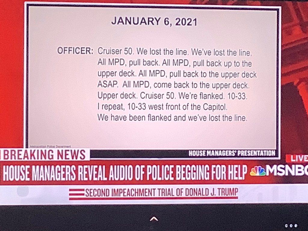 It was visceral. Gripping. Echoing within the otherwise deathly silent Senate chamber, the voice over the radio was strident, strained, alarmed almost to the point of panic, the officer shouting above the fray that his unit was being overwhelmed. We’re taking projectiles! Let capitol know they have breached the scaffolds! They are behind our lines…We’re flanked! 10-33! We have been flanked and we’ve lost the line! This wasn’t the sort of stuff that eavesdroppers would have expected to hear over their police band radios. It was beyond shots fired, beyond even officer down. It was more like an echo from the jungles of South East Asia, as if a routine patrol had gone disastrously wrong, and now frantic calls for artillery support were crackling over radios at the remote fire base as it dawned on the queasy commanding officer that one of his companies had stumbled into an ambush and was about to be annihilated by thousands of NVA, massed somehow where nothing approaching that sort of force was supposed to be. 10-33 the cop shouted, the police code for emergency, but it might just as well have been broken arrow. It might just as well have been coming from Ia Drang, or Dak To, somewhere from which an anguished radio call like we have been flanked and we’ve lost the line wouldn’t have run so jarringly counter to the presumed context.