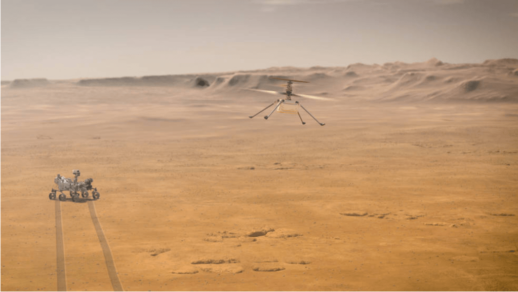 Perhaps less astounding, but even more fun, is the helicopter. Perseverance is testing technologies that might be highly useful to future exploration missions, and one of those is a little solar-powered helicopter named Ingenuity that’s going to attempt the first controlled flight on another planet. It’s just a little machine, weighing about four pounds, and it’s purely a technology demonstrator, there just to see if it’s even possible to get something to fly in the Martian atmosphere. It might not be. The air is awfully thin up there, 99% less dense than the stuff we’re used to, and not the best medium in which to generate aerodynamic lift, besides which it’s hellishly cold, to the point that something so small as Ingenuity might simply freeze solid. They’re going to give it a shot though, and if it works, wow. Imagine it: one day, much larger flying machines toting scientific instrument packages might be cruising at speed over all the most interesting places on the planet, performing reconnaissance for the plodding rovers below.