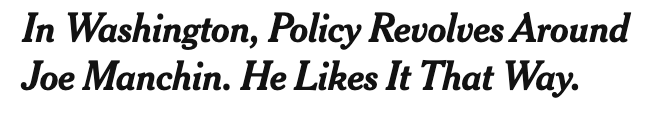 This one Senator, representing a state of about 1.8 million people, will determine how things go for the other 330 million Americans, and, on some matters, all seven billion of us out here, too. He’s comfortable with that. He likes it that way. He thinks he’s right. About everything, all the time.
