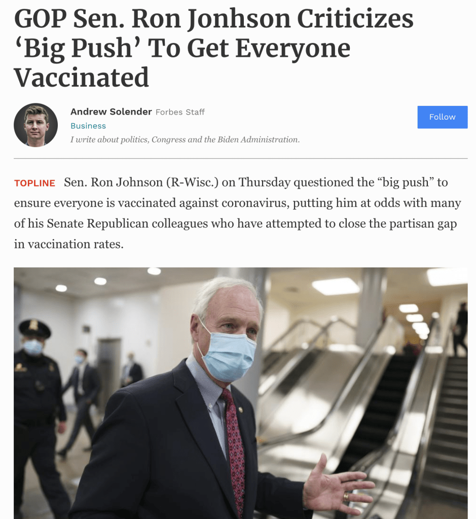 Thanks at least in part to the asinine mutterings of folks like Johnson, it’s starting to look like the U.S., and many other nations (including our own, sadly) won’t get to herd immunity, reckoned right now to require vaccination of 80-85% of the population. We don’t really know that’s the figure that’ll do the trick, and of course as the bug evolves into more virulent strains, it will probably rise higher – herd immunity for measles, for example, requires 95% to be vaccinated. For doing what he can to help COVID reach the giddy heights attained by other bugs like the Measles, and for resisting the efforts of private businesses to do their part in halting the spread of the disease by the plague monkeys who won’t get vaccinated, Johnson easily takes the Gomey!