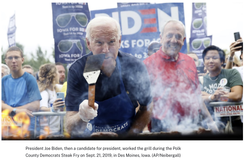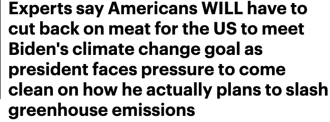 You might have registered that over the past week or so, Republicans and their Fox News/OANN henchmen had been pursuing the latest scandalous scheme of the Biden Democrats: a plan to deprive decent, hard-working, tax-paying Americans, women and children included, of their God-given right to eat meat! To eat meat, people!! That’s right, you heard me. In the unholy pursuit of the bogus climate objectives contained in the (apparently already enacted) Green New Deal, Biden is going to stop the citizenry from consuming more than four pounds of red meat a year. That’s rationing! And socialism! And not enough meat! Heck, your average upright American eats four pounds of red meat most every weekend. So we’re talking about a savage curtailment of the wholesome meat portion of the average American diet, or at least the diets of real Americans, not those Kale-gobbling, Tofu-swallowing liberal LGBTQ elite peckerwoods out on the coasts. How the hell does that help the climate anyway, supposing it needs help, which it doesn’t?