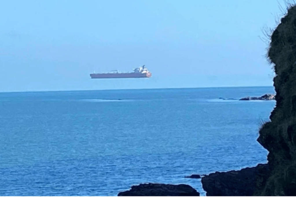The result is what’s known as a looming or superior mirage, A.K.A. the Fata Morgana Illusion, and it must be awfully disconcerting if you don’t know what’s going on. Or even if you do.