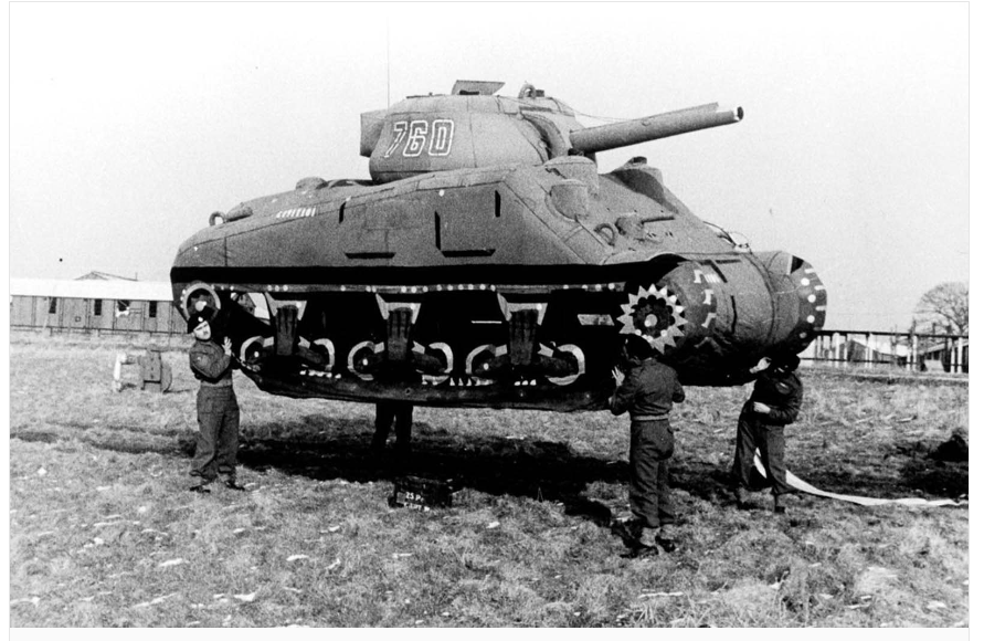 …this decoy Sherman tank of the sort used to fool German reconnaissance aircraft in the run-up to D-Day