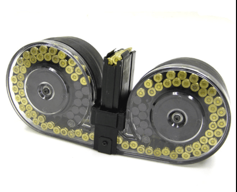 So there you go, all you militiamen and cosplaying Navy Seals! You fire just as many flesh-ripping, bone-pulverizing Mach 3 bullets as you want, just as fast as you can, and good for you if you live in Texas, or one of the 39 other States that don’t ban high capacity magazines, so you can load her up with one of these hundred-round babies and really let her rip:
