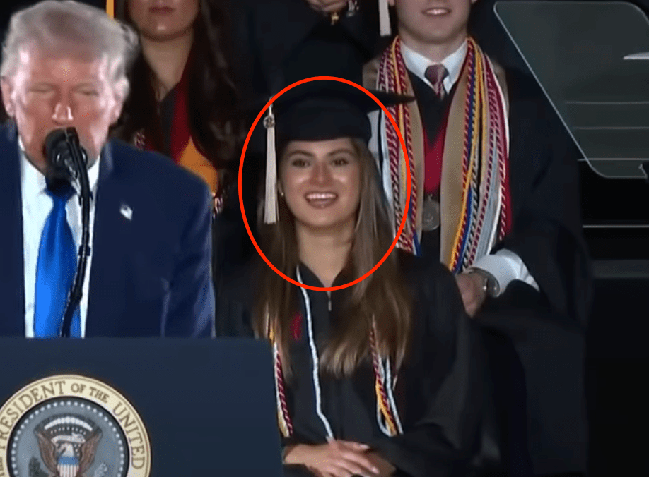 Parenthetically, it’s not even Donald who pisses me off the most in this one. It’s the Whitest Generic Sorority Girl on Earth, laughing along and thoroughly enjoying the comedic stylings of her Beloved President, Emperor, and Orange God King: