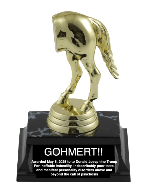…who else but multi-award winner Donald Josephine Trump himself, who, let’s face it, rates a Gomey every day, about three times a day, but really caught our attention last week with a series of truly transcendant episodes of assholery.