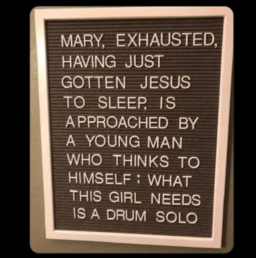 If I hear that god-awful drummer boy bucket of schmaltz one more time, I’m going to chuck an embolism. What was a goddam kid with a snare drum doing at the nativity anyway? What, there were little uniformed drummer boys running around the Roman world? Fine then, how’d he know to visit an obscure stable in Judea on the very day in question – he followed a star too? And did nobody see him lurking about? He’s not mentioned in the Good Book, last I checked, and suppose he was there, didn’t his pa-rump-a-bum-bum shenanigans disturb the animals, and vex the Wise Men? We come from afar, Holy Mother of God, bearing gifts, having been guided to this very manger by the bright new star that – OH FOR CHRIST’S SAKE WHAT’S WITH THE F*%KING DRUMMING?
