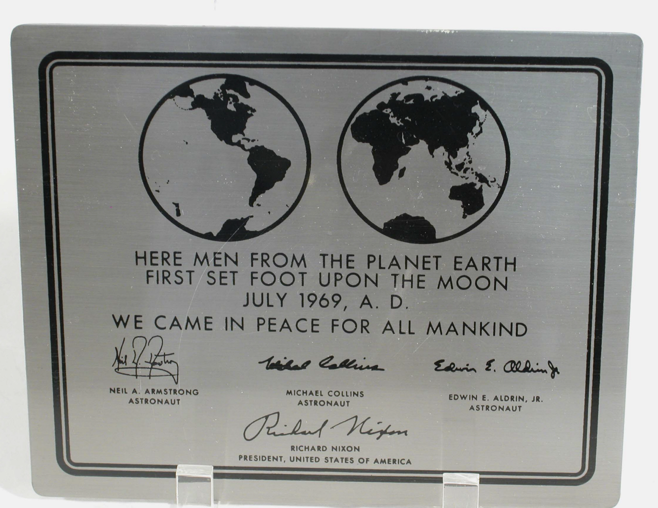 I don’t know if that story is true, but I’d like to believe it is. The Space Race was a Cold War competition between the US and USSR, no doubt, each holding up its space achievements as emblematic of national superiority. Yet the drive for the Moon was in some ways bigger than geopolitical rivalry. The race was about winning, yes, but it was also about the aspirations of all of humankind, and it was possible to believe that those clean-cut, archetypically American astronauts were going there for all of us. They seemed to think so too – upon landing, they planted an American flag, sure, but the plaque they left behind didn’t talk about the triumph of the United States, or even point out the mission’s country of origin on the map of the globe: